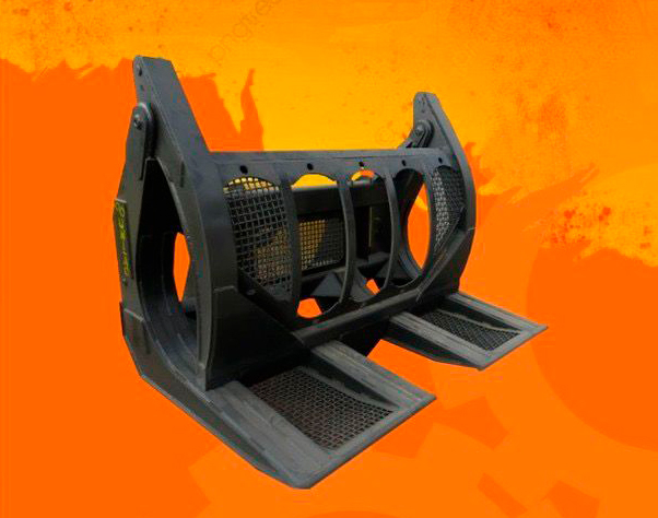 Garfos com largura padrão de 2.20 mts, com dentes longos e Mandíbula com fechamento hidráulico com encaixe sobre os dentes. Possui grades para serviços florestais/limpezas diversas. Fácil manuseio e baixa manutenção.